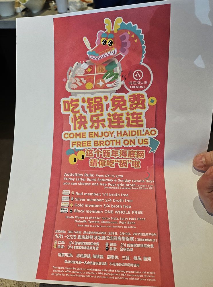 Introducing the menu at Haidilao in Fremont, CA, a popular Asian-owned restaurant offering an array of options for all occasions. From casual dining to late-night cravings, Haidilao provides a diverse menu with vegan and vegetarian choices, along with special accommodations like catering services and happy hour specials. The restaurant boasts a trendy ambiance with excellent service and attention to detail, making it ideal for groups and family gatherings. The hot pot experience at Haidilao is highly praised, with various broth flavors like Mushroom, Spicy, Pork Bone, and Pork Stomach. Customers can enjoy a Lunch special including soup base, protein, rice/noodle, and veggie platter. Despite crowded peak hours, the quality of ingredients and interactive dining experience make Haidilao a must-visit destination for hot pot lovers.